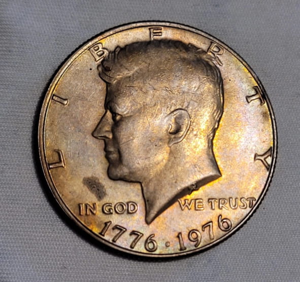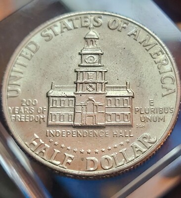 View Missing Clad Layer Picture1776 to 1976 Half Dollar Broadstrike Error